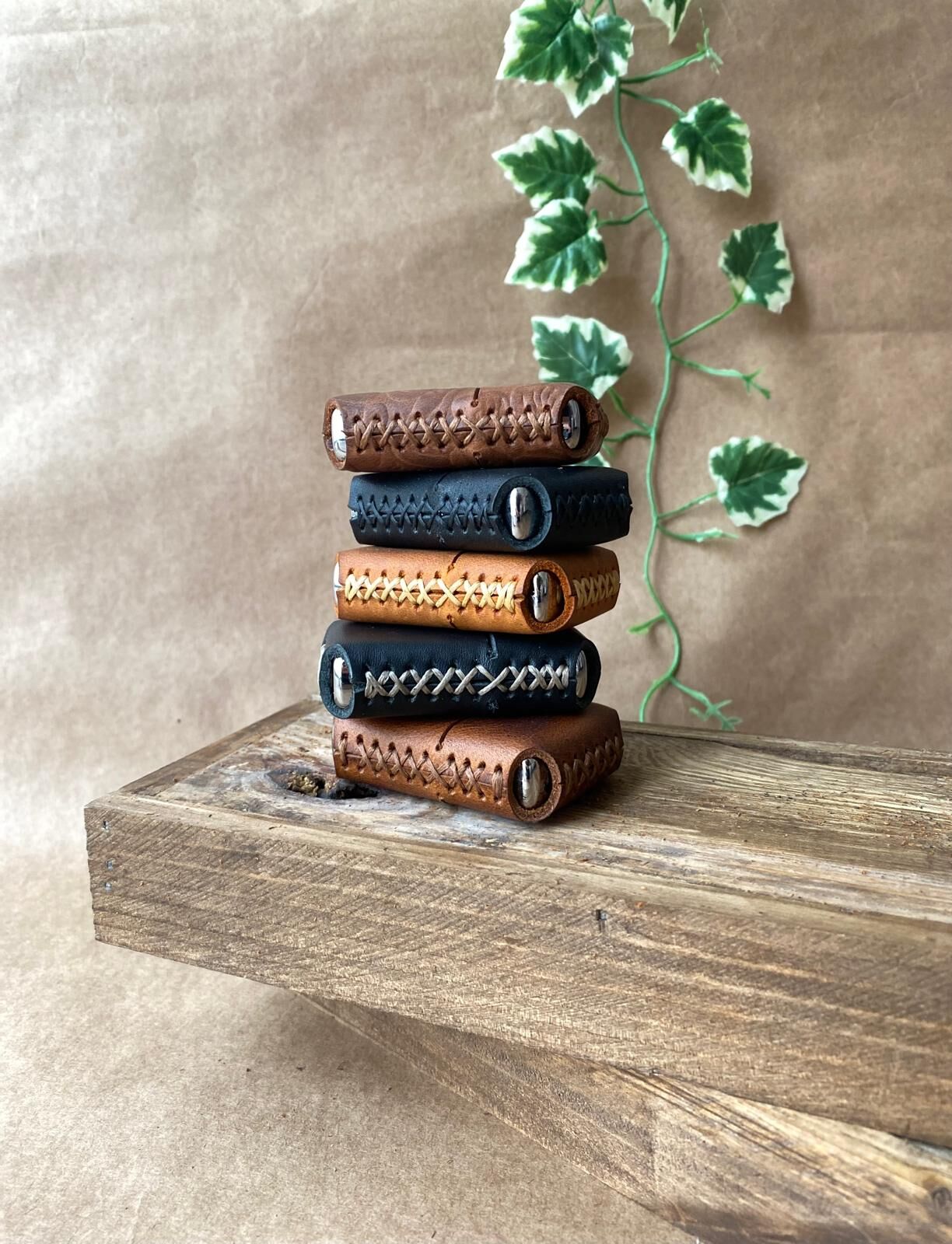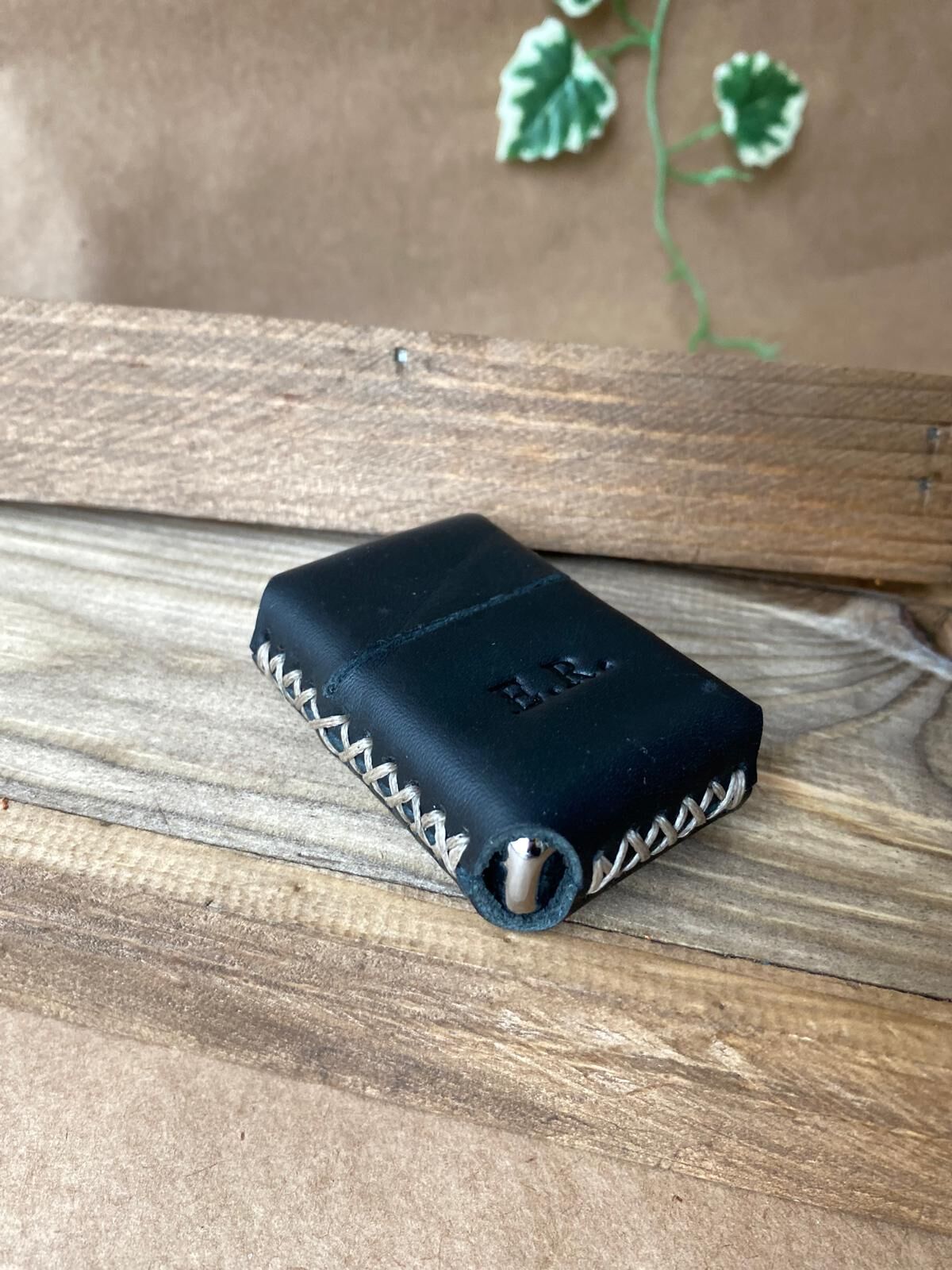 ÇAKMAK - Deri Kaplı Benzinli Çakmak Siyah Ekru