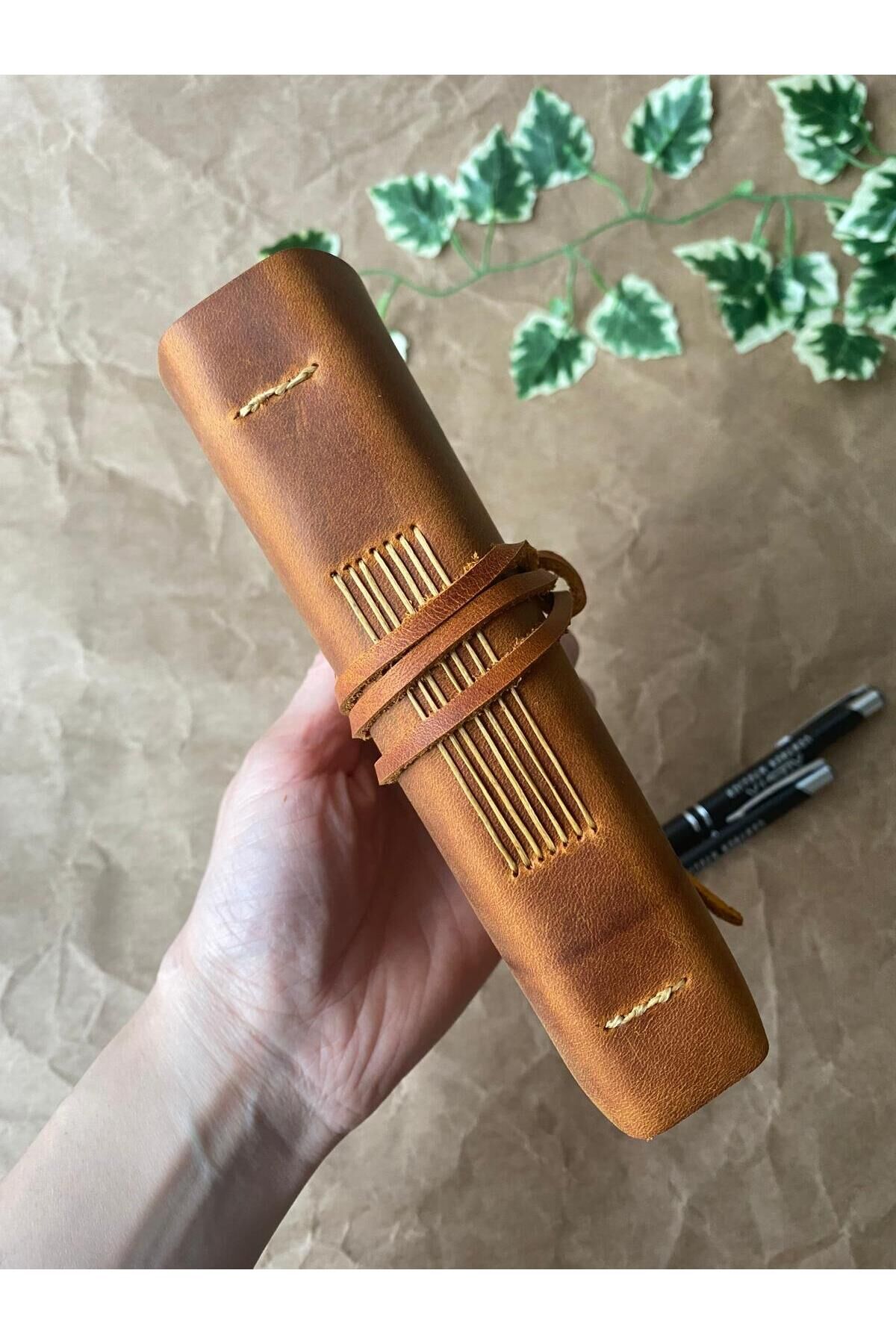 ALONSO MINI - A6 Deri Ciltli El Dikişi Defter Camel