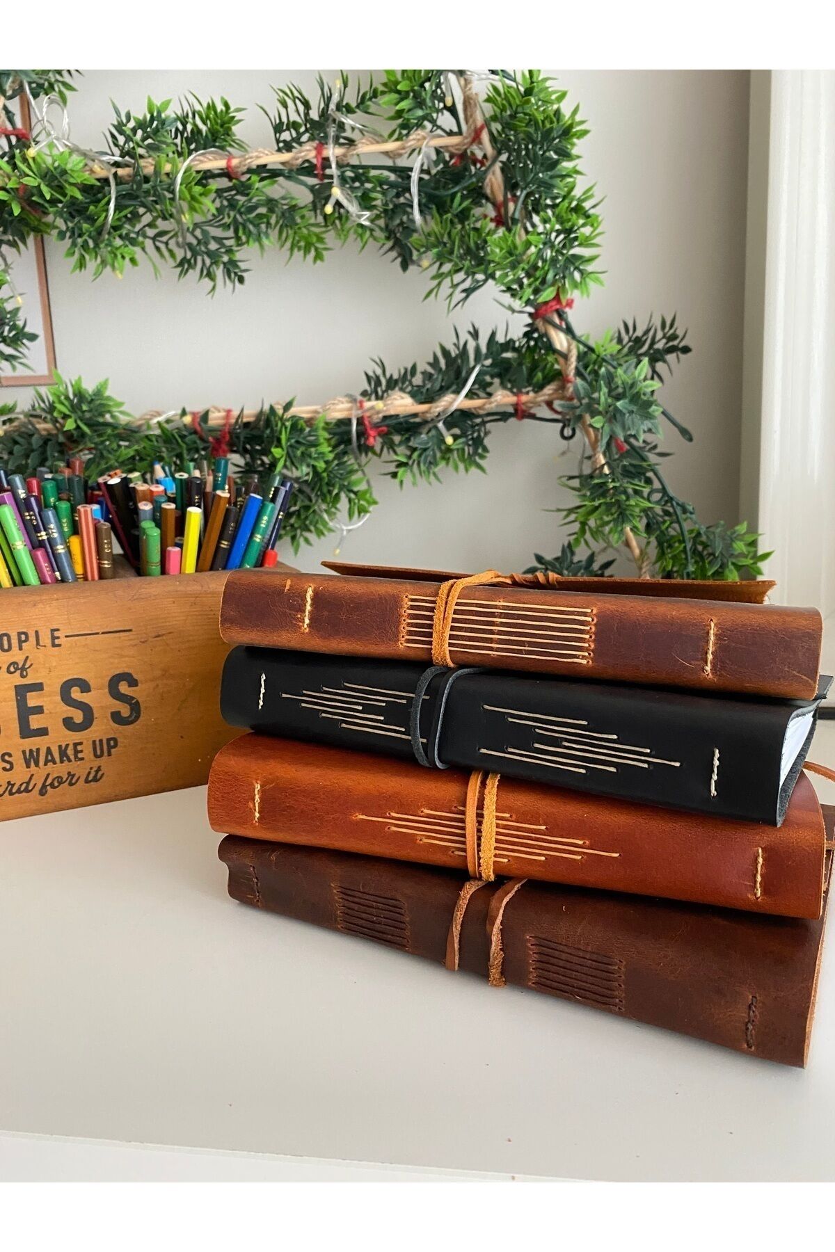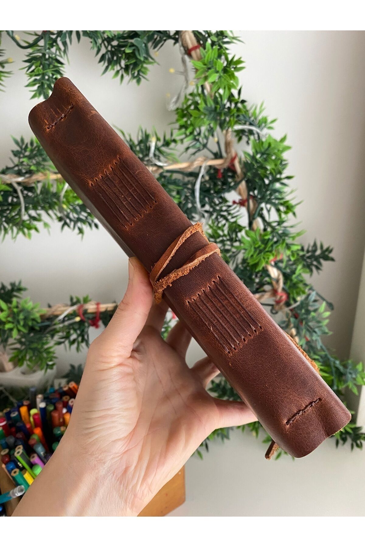 El dikişi ve kaliteli deri kapak, uzun süreli kullanım sunar ve doğal deri dokusu sayesinde her ürün benzersiz görünür.