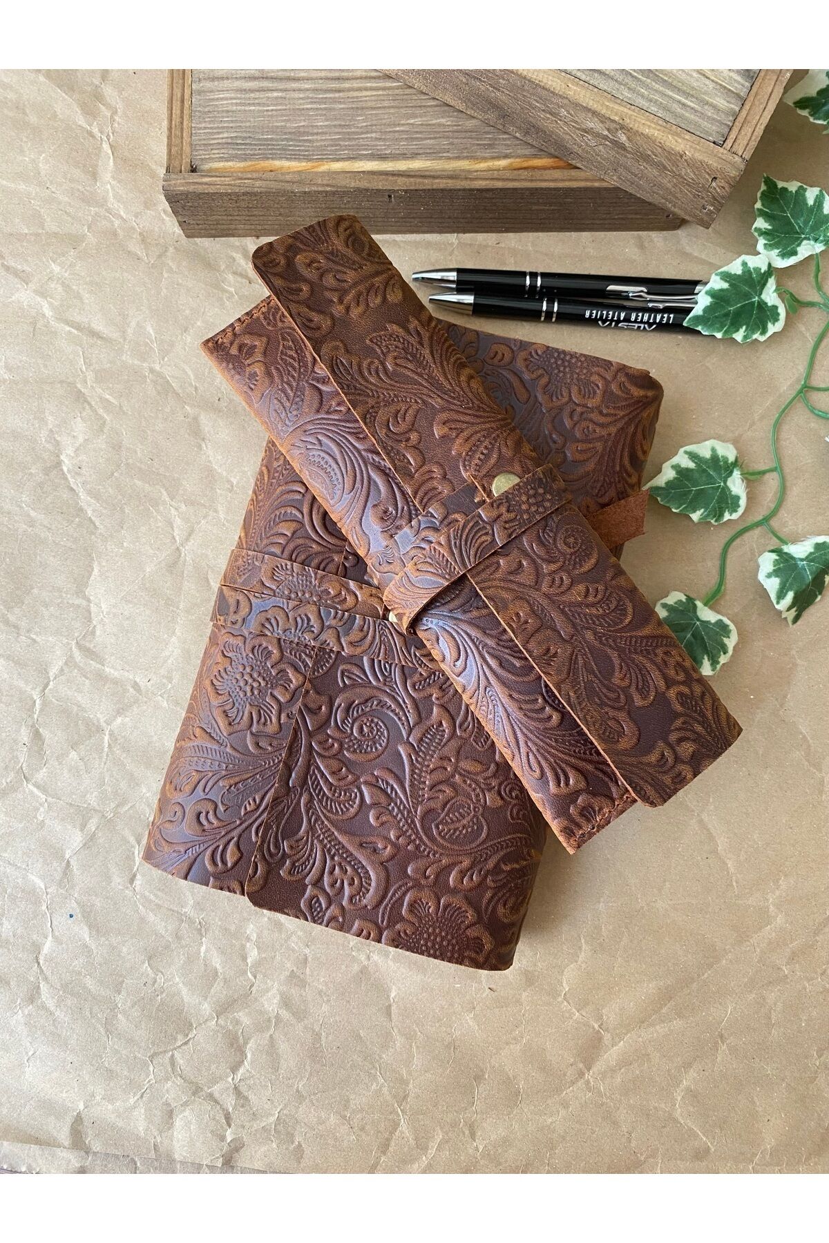Her parça %100 el yapımı ve hakiki deri kullanılarak hazırlanmıştır ve günlük kullanımda ajandanızı, not defterinizi ve kalemlerinizi düzenli şekilde taşımanızı sağlar.