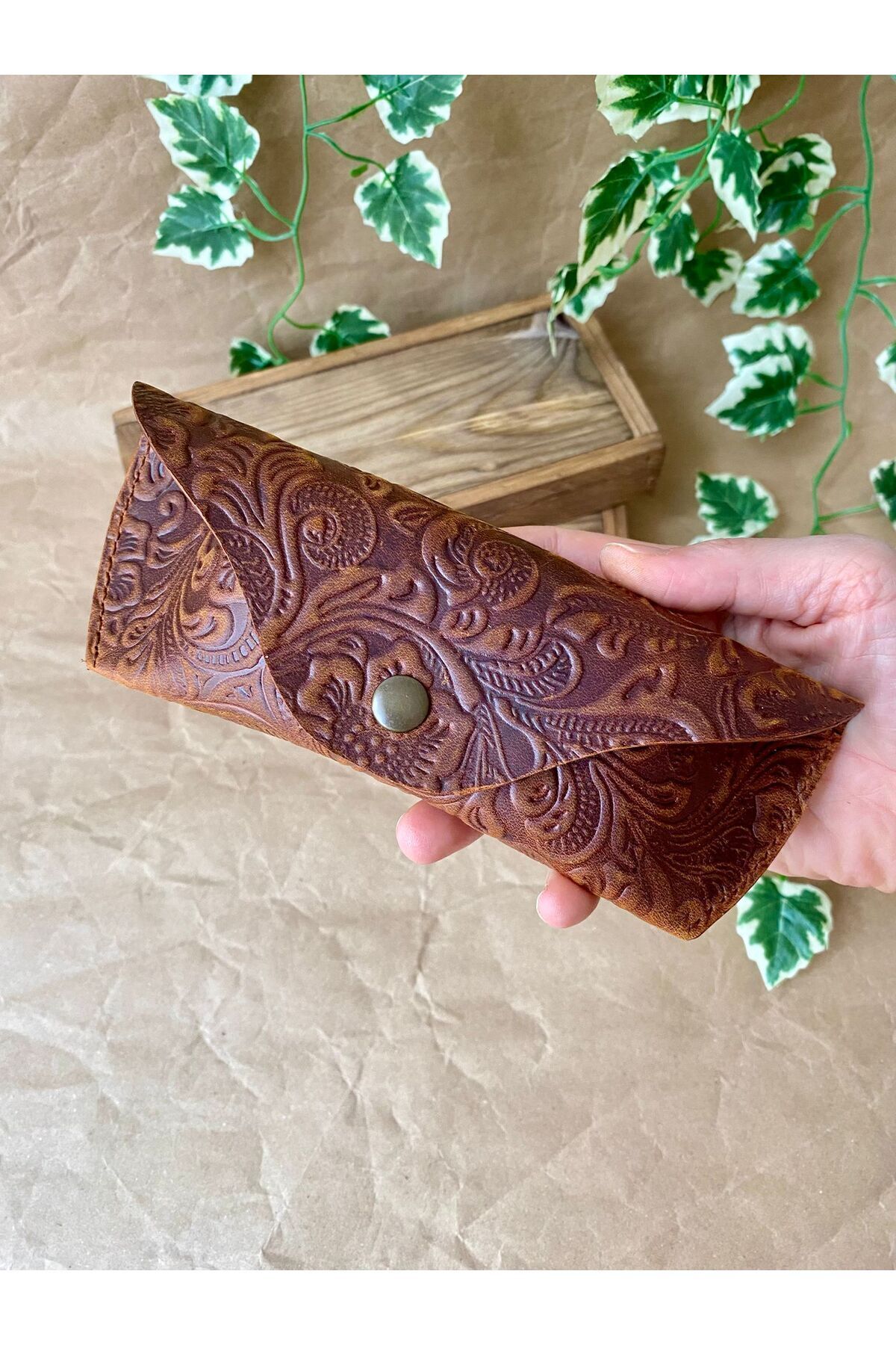 LEBRON Hakiki Deri Gözlük Kılıfı, %100 el yapımı ve hakiki deri malzemeyle üretilmiş kompakt bir koruyucu aksesuardır.,