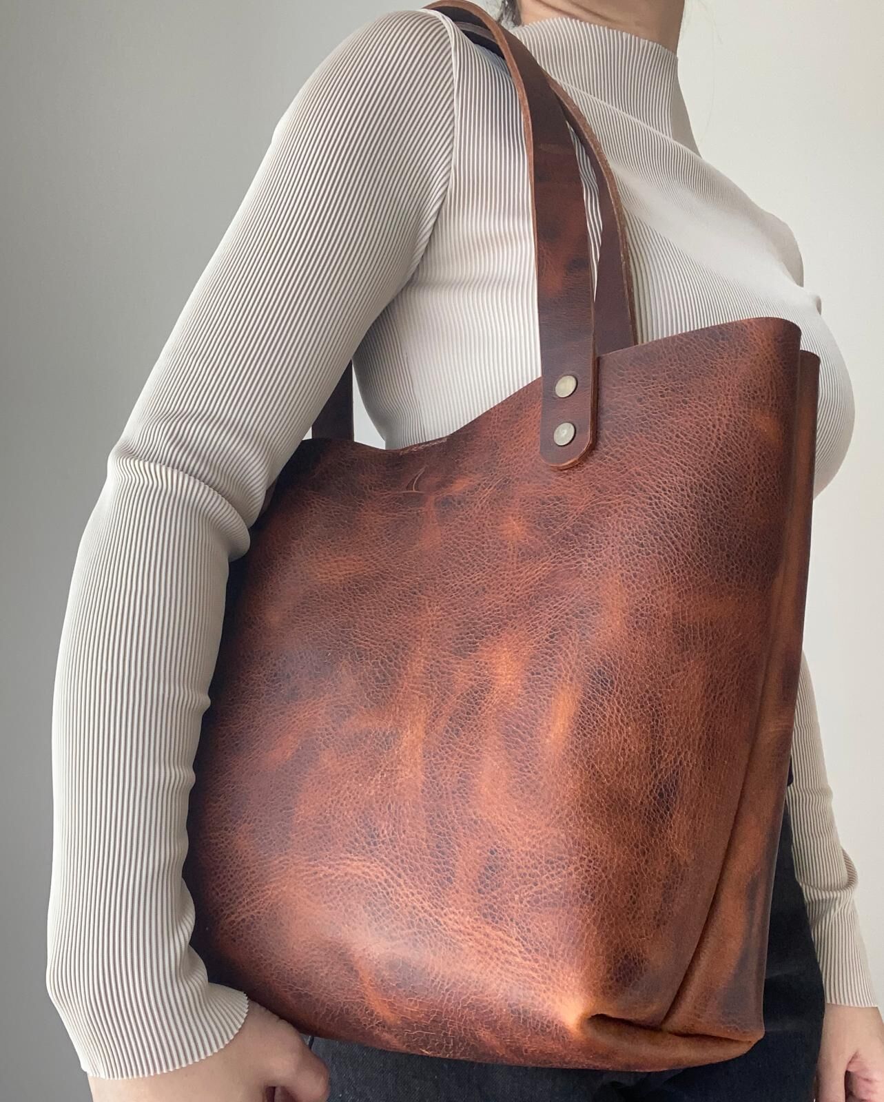 STEFFI Hakiki Deri Tote Çanta, el yapımı ve hakiki deri malzemeyle üretilmiş günlük kullanım çantasıdır.